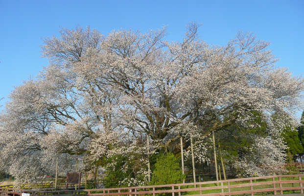 白川水源からほど近い場所にある樹齢400年を超える1本の大桜。開花の時期には熊本県民をはじめ県外からも多くの方がお越しになります。
