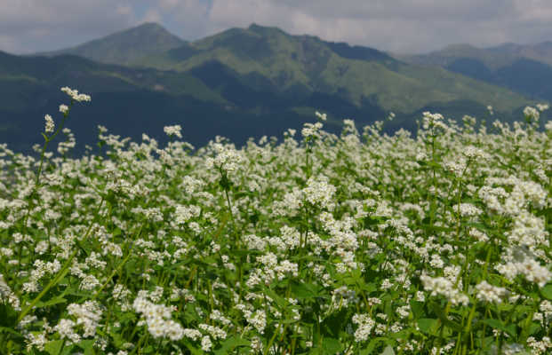 阿蘇はそばの産地でカルデラの周辺には花の時期になるとたくさんの可憐な白い花が咲き乱れます。南阿蘇の久木野地区も盛んにそば作りが行われています。